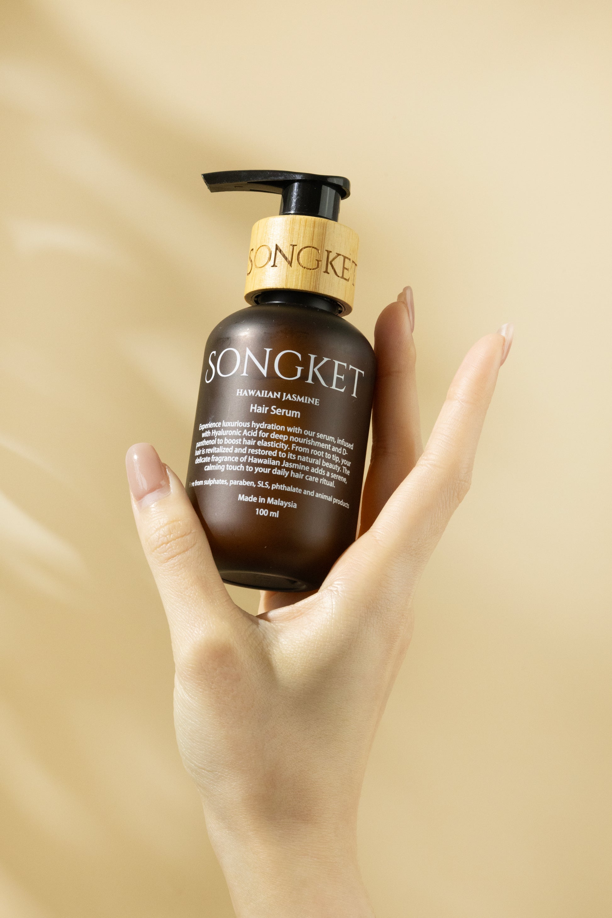 Experience luxurious hydration with our serum, infused with Hyaluronic Acid for deep nourishment and D-panthenol to boost hair elasticity. From root to tip, your hair is revitalized and restored to its natural beauty. The delicate fragrance of Hawaiian Jasmine and Frangipani adds a serene, calming touch to your daily hair care ritual.